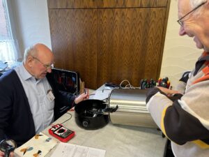 Es hatte sich wohl herumgesprochen, dass wir Experten haben, die Probleme mit Thermomixen oder Kaffeevollautomaten beheben können, denn diese Geräte waren zahlreich vorhanden. Auch viele „alte Schätze“ wie zwei Schwippbögen („was ist das denn?“, war die Frage im Vorfeld) konnten zum Leben erweckt werden. Ein alter Sony-Kassettenrekorder, für den Ersatzteile beschafft wurden, konnte zum Schluß dann doch nicht repariert werden. Nach mechanischer Reparatur wurde ein defekter Tonkopf festgestellt, den es leider nicht mehr zu beschaffen gibt.