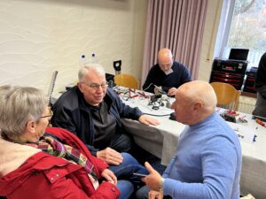 Das Repaircafe entwickelt sich auch immer mehr zu einem Ort für rege Kommunikation. Es trafen sich einige Besucher wieder, die sich schon längere Zeit nicht gesehen hatten und die Zeit während der Reparatur zu intensivem „klönen“ nutzten.